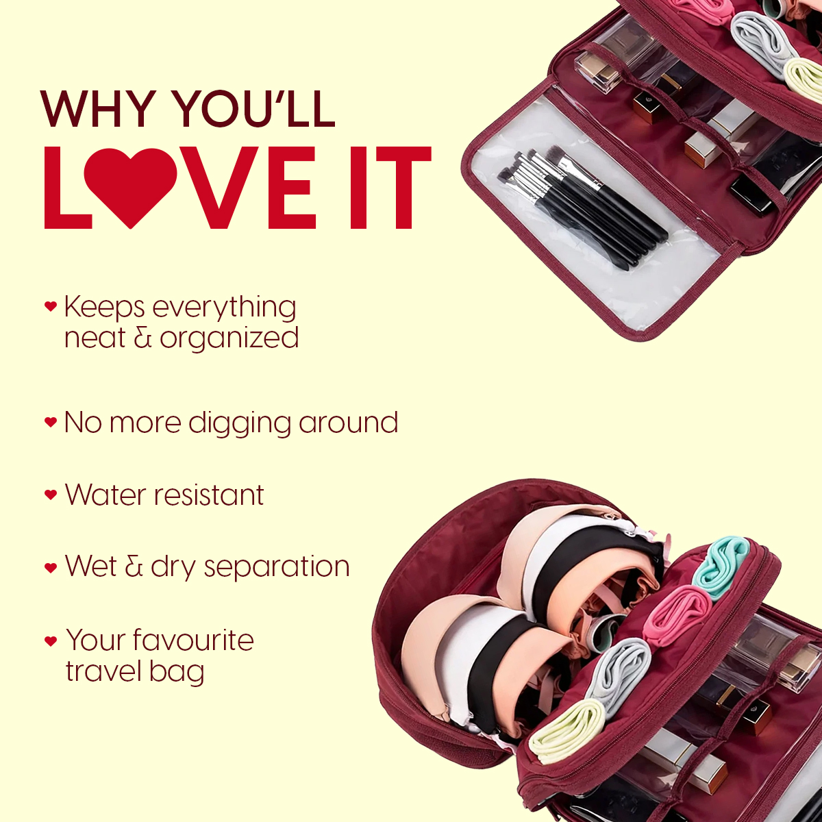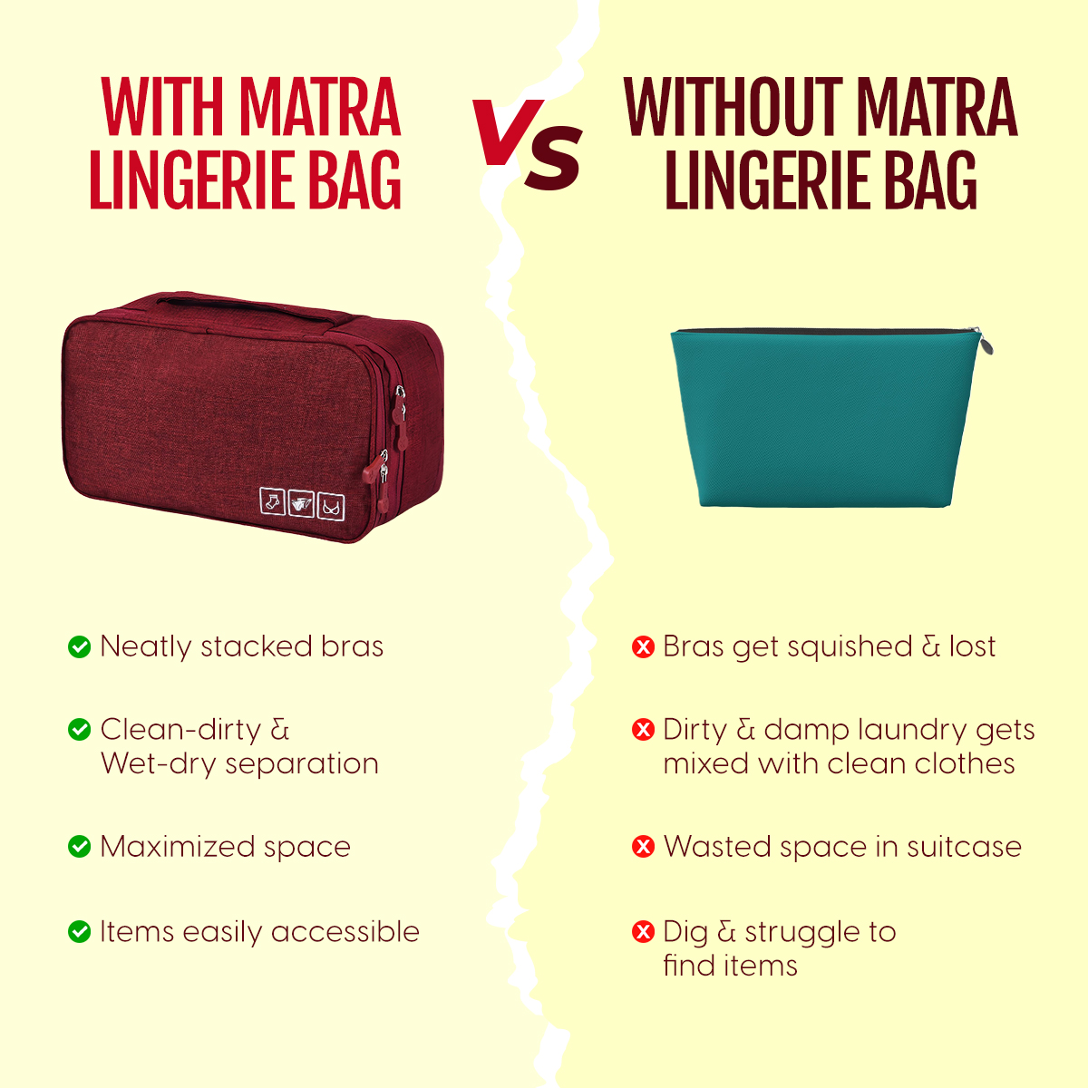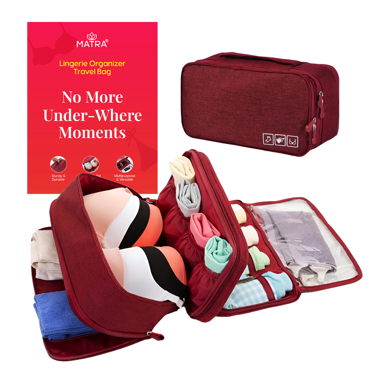 Meet the bra bag that finally puts an end to suitcase chaos. Matra Lingerie Organizer Travel Bag keeps your bras, panties, socks, bikinis, toiletries, and even your damp swimsuit perfectly sorted. With sturdy, water-resistant fabric, tough zippers, smart pockets, and true wet–dry separation, it’s the type of bag that’s so organised it could probably run your entire trip itinerary. Compact, lightweight and wildly versatile, this multipurpose underwear undergarment travel storage bag keeps everything neat and accessible, making it the one travel essential you’ll brag about more than your actual vacation.
