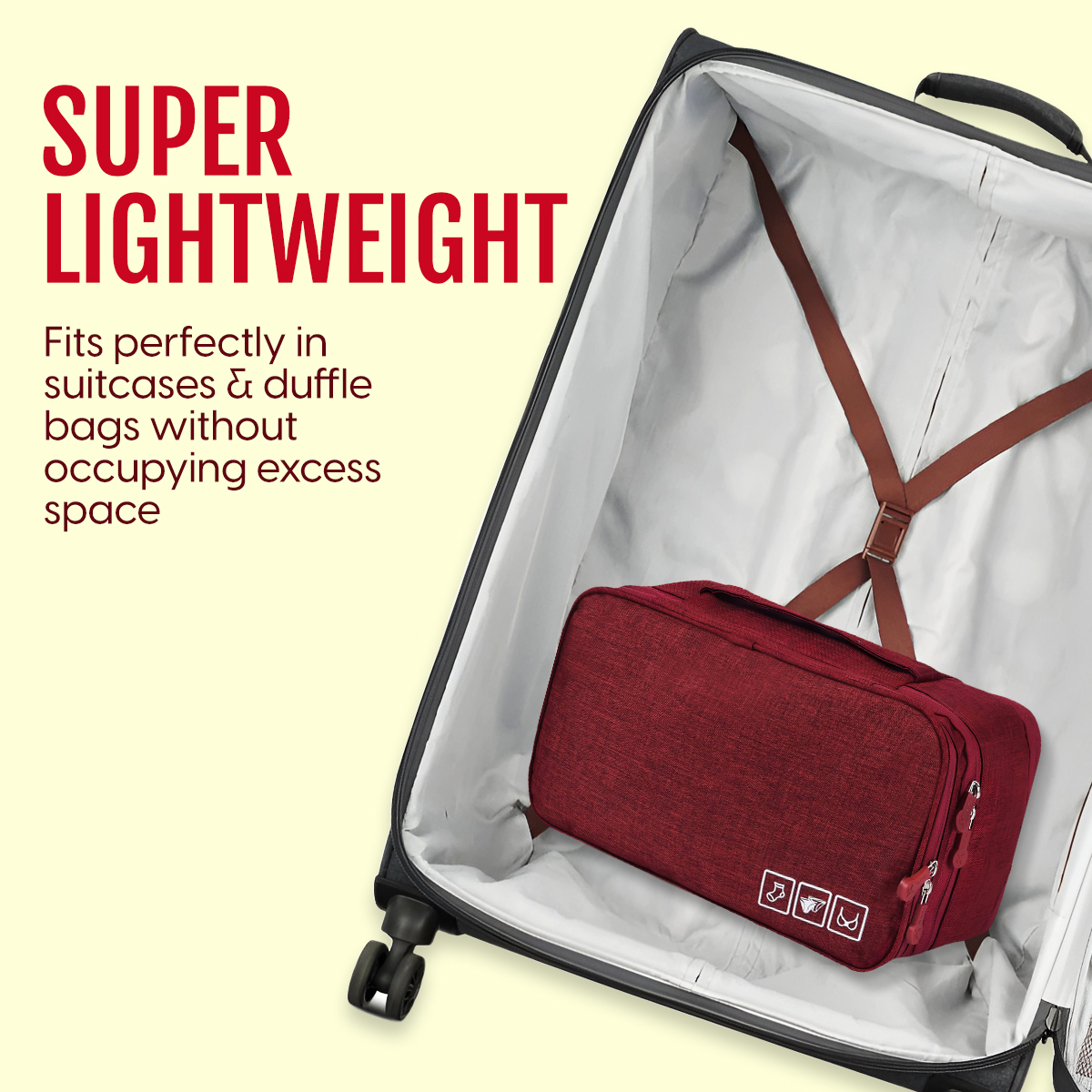 - Neat & Organized: Keep your lingerie and other items organized at all times with this underwear pouch for travelling. With everything in place, you will not have to struggle or waste time trying to find that missing sock. Everything stays accessible, without taking up any extra space in your luggage. Our bra underwear organizer bag easily saves precious space in your suitcase, thanks to its spacious yet compact and lightweight design.