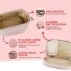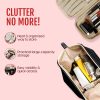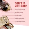 CONVENIENT TRAVEL MAKEUP BAG: This portable makeup organizer is a practical, stylish & spacious storage solution with multiple compartments to pack your makeup essentials (and “I might need this but I am never gonna use it” stuff) in a perfectly organized, and accessible manner.