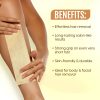 EASY TO USE: Wipe your skin clean and dry before waxing. Apply wax on the target hair using a spatula. Place the wax strip and press down firmly in the direction of hair growth. Pull & hold the skin taut & quickly pull off the strip in the opposite direction. Repeat as needed.