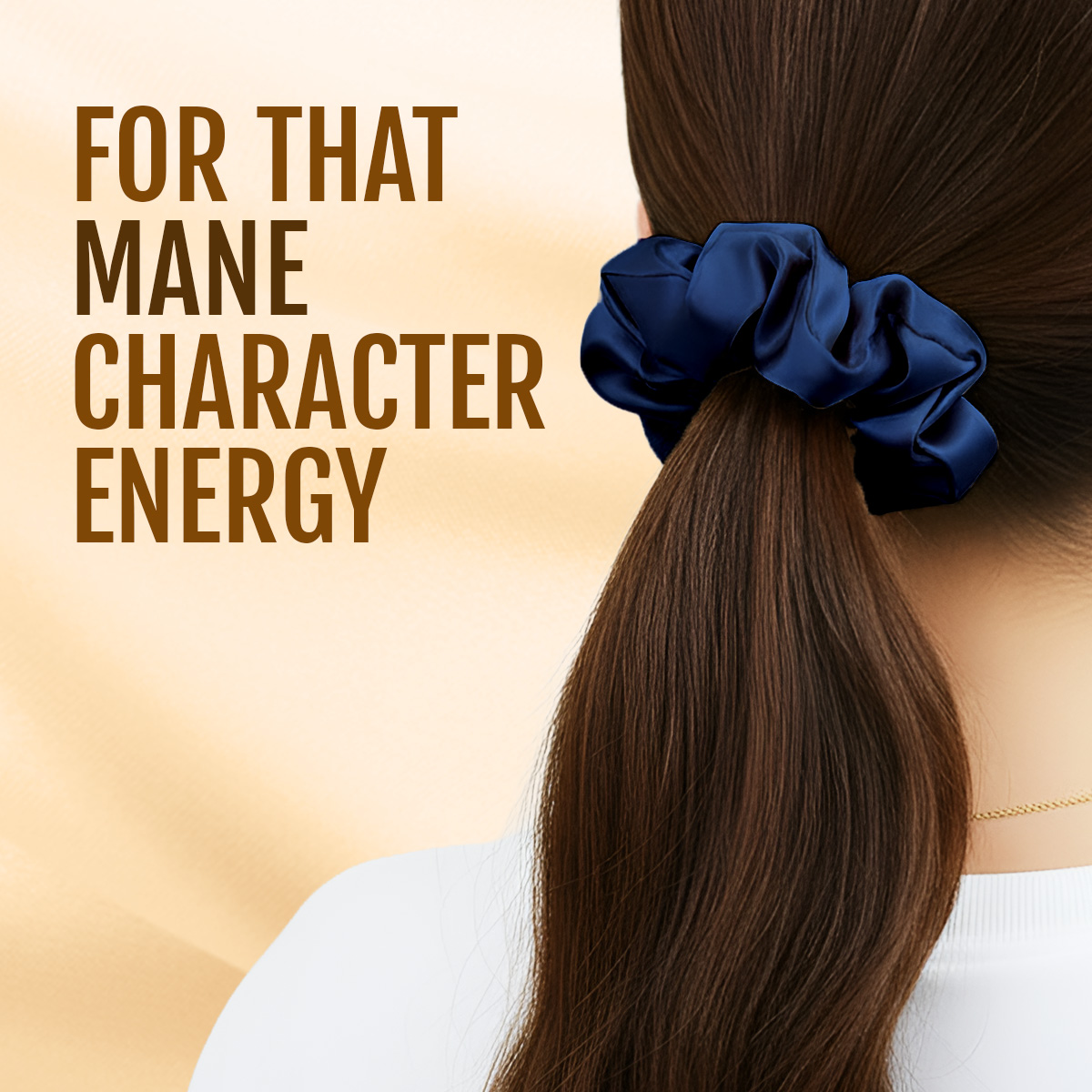 Matra Large Satin Scrunchie Silky & Soft Premium Hair Tie Rubberband – Anti Hair Breakage (Blue)