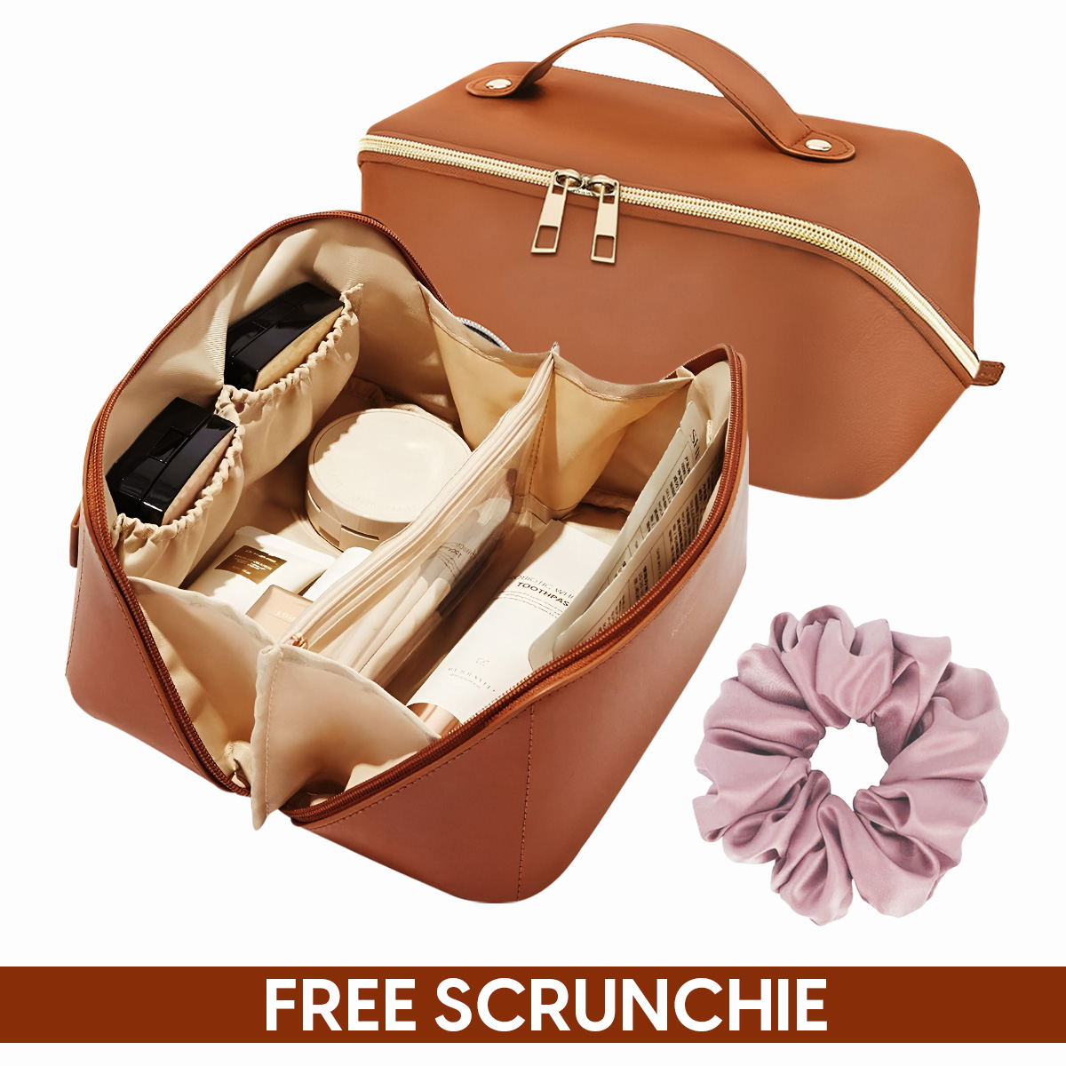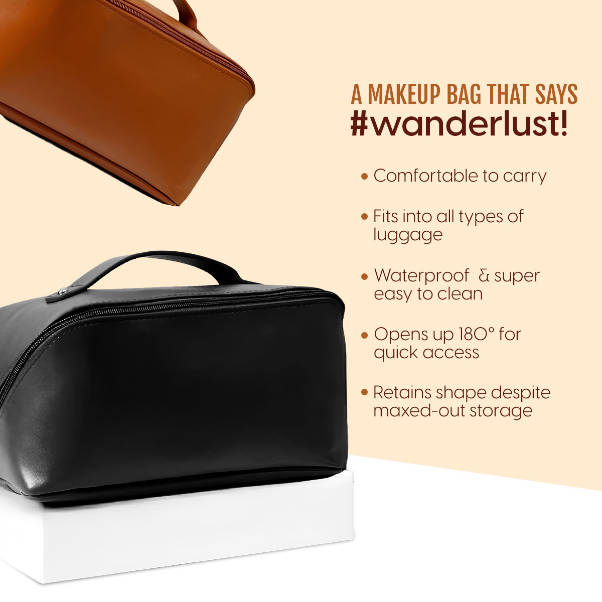 - Made Of Pu Leather: Kudos to the premium leather material, this cosmetic travel bag is waterproof, durable, and timelessly stylish. Plus, the double-layered design ensures a sleek, non-bulky, sturdy shape, that is sure to invite envy!