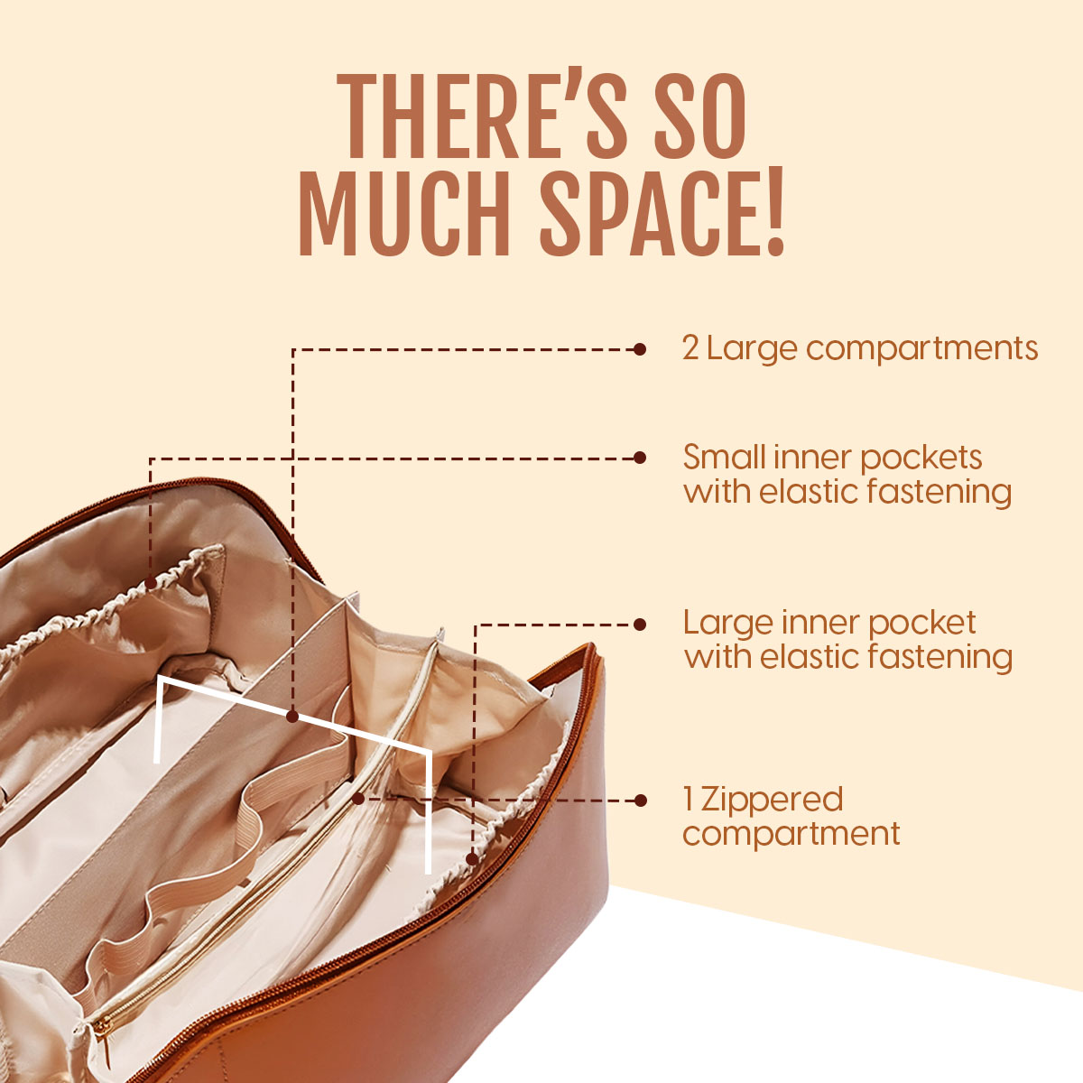 - Its A Bag To Brag About: This travel makeup bag is a practical, stylish & spacious storage solution with multiple pockets to pack your makeup essentials (and “I might need this but I am never gonna use it” stuff) in a perfectly organized, safe, and accessible manner.